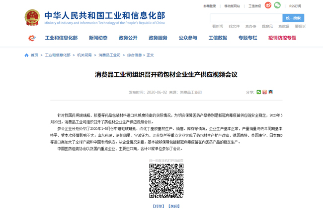 | 工信部消費(fèi)品工業(yè)司組織召開藥包材企業(yè)生產(chǎn)供應(yīng)視頻會(huì)議 |